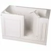 The Maui 60 in. bath tub is the industry’s deepest enameled steel bath tub with a modern, functional recess design. The Maui is lightweight and offers a built in leveling support pad. No mortar base required for installation- just set and level it, saving time and money. The Maui offers a 35 degree lumbar support for a more comfortable bathing experience.
