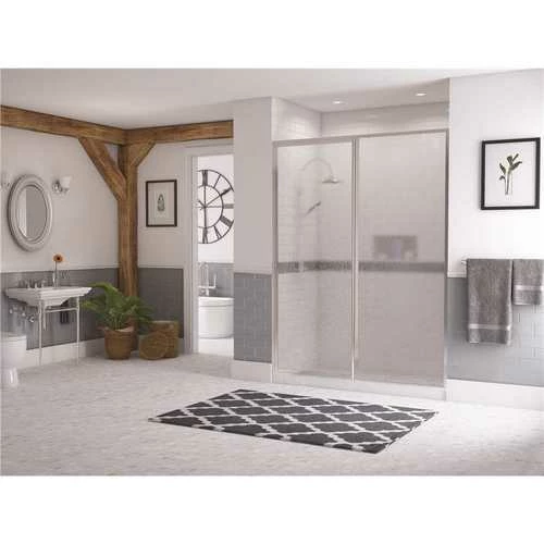 - Shower door features Aquatex pattern obscure tempered glass panels