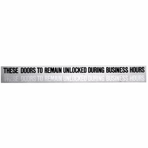 This CRL Business Door Header Sign is intended for use with double business doors. This decal is self adhesive and easy-to-apply. Adheres to metal, glass, painted wood or any clean smooth surface. For interior or exterior use. Black and white lettering on a clear background. Can be used on light and dark surfaces.