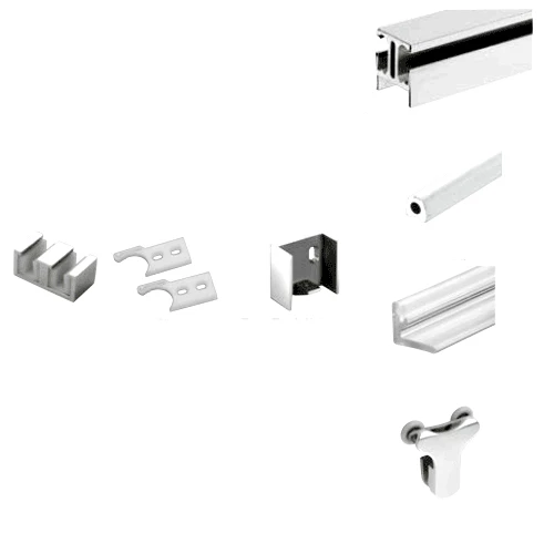 The NEW Contempo Series “I Beam” Bypass Sliding Shower Door System will be the focus of any bathroom in which it appears. Contempo has the flexibility to be installed either in a full standing shower, or above a bathtub. The Header is clad in polished or brushed stainless steel to present an elegant appearance. The Contempo Series has two stainless steel rollers per door to assure a smooth, gliding opening and closing of the bypassing doors using only fingertip control. The “adjustable height” header is the installer’s friend, allowing wiggle room for installation. Complete kits include: 73″ (1854 mm) length header; 4 each rollers; 2 each stoppers; 2 track holder fittings for the wall; 1 each bottom guide; 85″ (2159 mm) clear L-Jambs; 1 each 73″ (1854 mm) threshold. The Contempo Series Sliding System accommodates 5/16″ (8 mm) thick tempered safety glass (not included). A 90 Degree Accessory Kit is available for enclosures with a return panel.