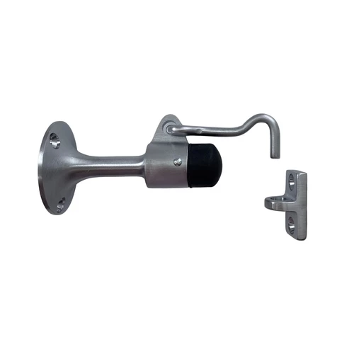 This CRL Wall Mounted Door Holder has a Hook Latch to keep the door in the open position. The body is made from cast brass. Screws and anchors are included.