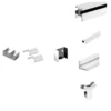 Hydroslide component parts can be ordered as replacement parts, or you can order the individual parts to fabricate your own custom installation. CRL Hydroslide 90 Degree Glass-to-Sliding Track Connector is for attaching the fixed glass to the Sliding Shower Door Upper Track in 90 degree installations.