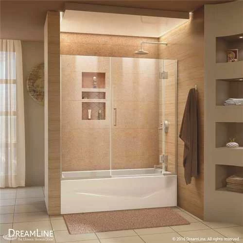 The DreamLine Unidoor-X is a frameless shower door, tub door or enclosure that features a luxurious modern design, complementing the architectural details, tile patterns and the composition of your bath space. Unidoor-X showcases sleek, clean lines to enhance any shower space, creating a stunning appearance. DreamLine exclusive ClearMax water repellant and stain resistant glass coating adds superior protection from stains and is nearly maintenance-free. Unidoor-X is part of DreamLine Unidoor collection, the most versatile line of shower doors and enclosures on the market.