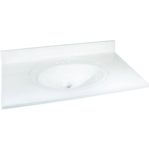 Durable and seamless, the one-piece cultured marble vanity tops are the ideal addition to any vanity. Featuring an integrated oval bowl and 4 in backsplash, the cultured marble tops are easy to install and ready to add a stylish touch to your bathroom.