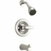- Tub and shower package include valve trim, shower head, shower arm, tub spout, hand shower, hose, and slide bar
