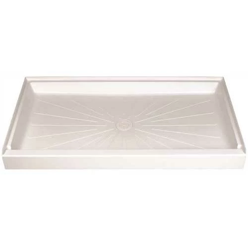 The MUSTEE, E. L. & Sons, Inc. Durabase 34 in. x 60 in. Single Threshold Shower Floor in White features heavy-duty, molded fiberglass construction with a ribbed underbody for strength and a slip-resistant Sunburst floor pattern for safety. The shower base has a semi-gloss surface that is easily cleaned. Integral molded center drain for connection to 2 in. Sch. 40 ABS, PVC or iron DWV sanitary drain pipe. Code listed by IAPMO.