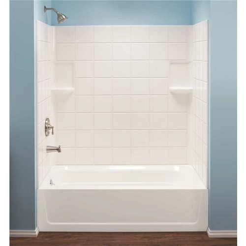 - 3-panel wall system with tongue-and-groove seams that assemble quickly to create a watertight wall surround