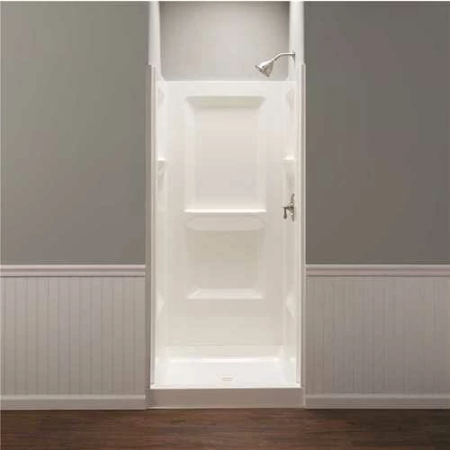 The MUSTEE Durawall 36 in. x 36 in. x 73-1/4 in. 3-piece Shower Wall features a white glossy finish that complements a variety of bathroom decorating schemes. In addition, the surface is resistant to mold and mildew for easy cleaning and maintaining.
