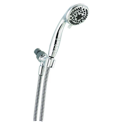 Five-spray/massaging hand shower. WaterSense certification promotes water conservation. Pause feature reduces the water to a trickle, allowing you to conserve water while doing tasks such as lathering up or shaving your legs. Soft, rubber spray holes allow you to easily wipe away calcium and lime build-up from the spray face of your hand shower with the touch of a finger.
