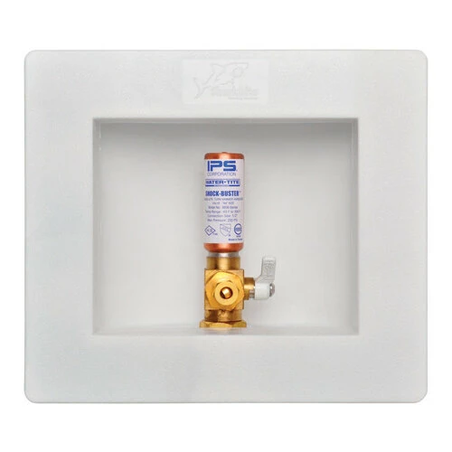 The SharkBite Ice Maker Outlet Box with Water Hammer Arrestor features a 1/2 inch push-fit connection and can be used with copper, CPVC or PEX lines. SharkBite Push-fit connections decrease the time and effort needed to connect water distribution pipe. There is no glue, soldering or crimping needed. Simply cut your pipe, debar, mark the pipe approximately 1 inch (for proper insertion depth), install pipe to proper depth and you’re done. Water Hammer Arrestor is integrated into valve to protect your homes plumbing system and your fixtures from water hammer.