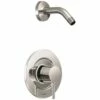 Small, water saving shower with pressure compensating technology that provides consistent 1.5 gpm flow rate from 30 to 80 psi. Shower is a conical spray pattern of ideally sized droplets for a forceful, invigorating and very wet feeling shower spray. Available with or without pushbutton trickle valve. Saves over 20% more than other water saving showers, complies with all Water Sense guidelines for water and energy conservation. Made in the USA of solid brass and chrome plated, Installs easily with standard 1/2 in female threads.