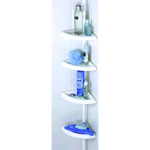 | Mounting in the tub or shower's corner keeps bath | Mounting in the tub or shower's corner keeps bath items conveniently within reach |
