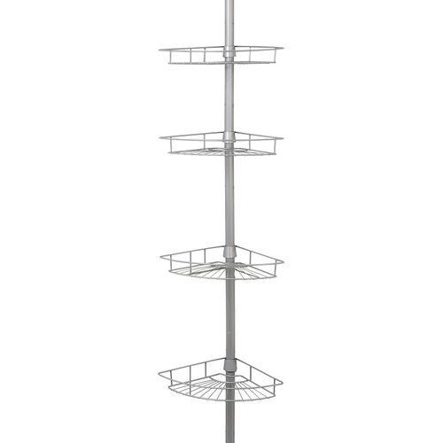 Zenna Home Corner Tension Pole Shower Caddy, Number of Shelves: 4, 8 in OAL, 11-1/2 in OAW, 97 in OAH, Steel, Satin Nickel, Freestanding Mounting, Includes: Built-In Towel Bar