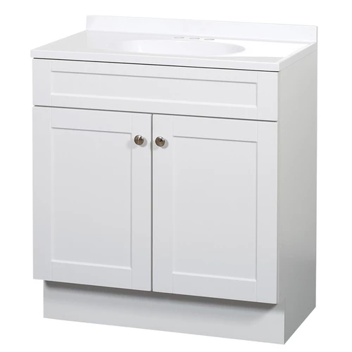 Zenna Home 2-Door Shaker Vanity with Top, Sink Material: Cultured Marble, Sink Color: White, Wood, White, 36 in W, 18 in D, 35 in H
